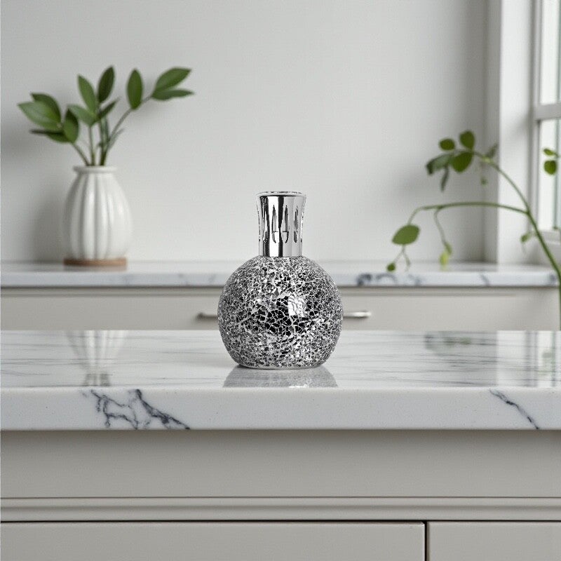 Zilver Moisaic lamp, capaciteit lamp 400 ml, 9cm*9cm*15cm Length*width*height.