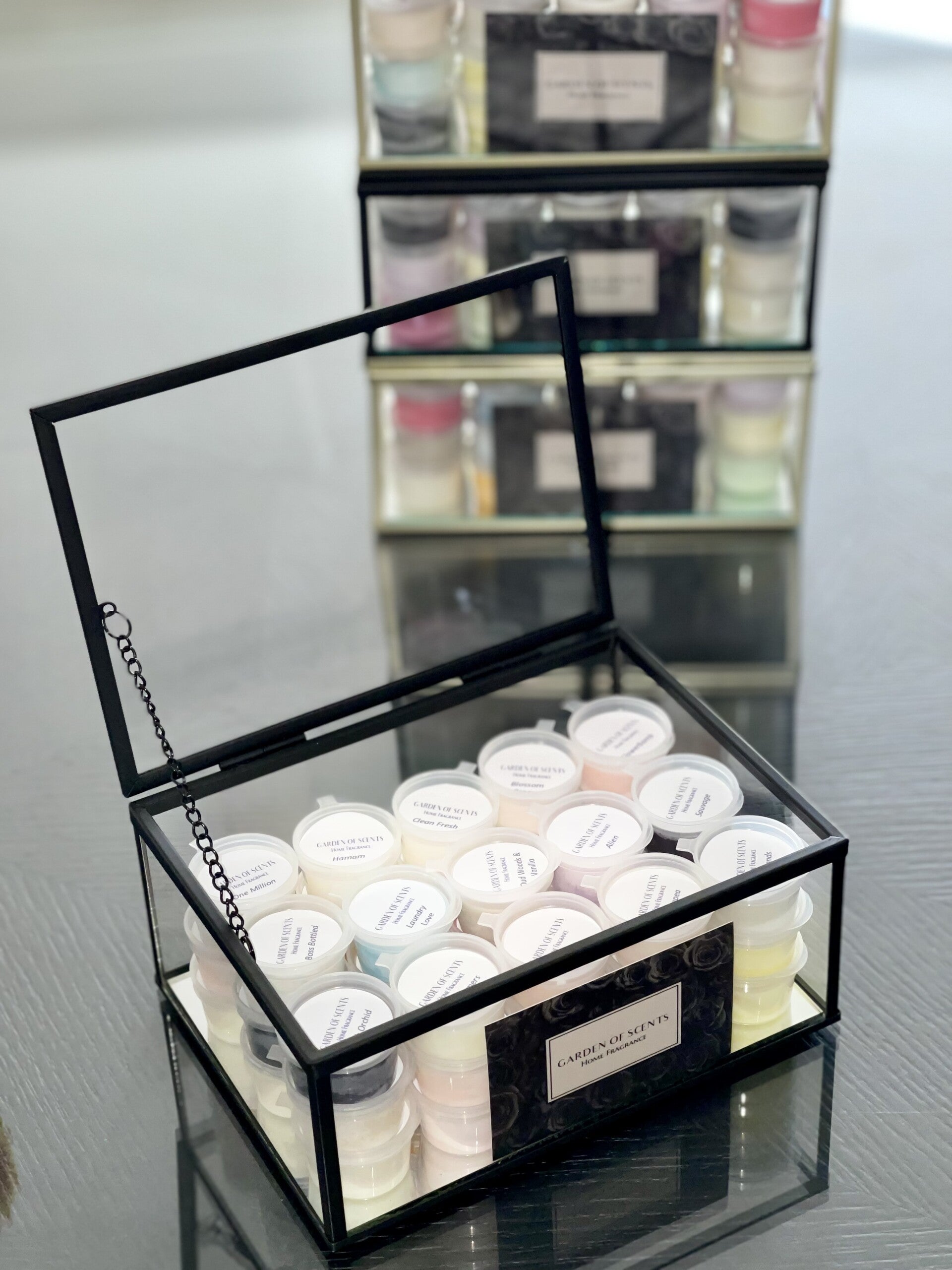 Voordeelset waxmelts in een mooi spiegeldoos in het zwart en goud, inclusief 45 waxmelts.